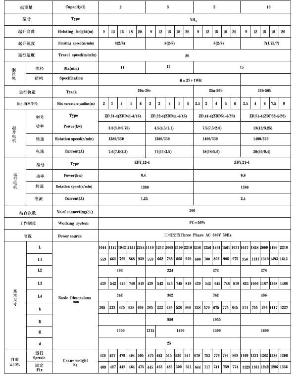 1、   YH系列冶金電動葫蘆主要用于吊運熔融金屬的冶金起重機設備,其起重量ㄑ20m,工作環境溫度為-10℃-60℃,在40℃的環境溫度下,相對濕度不大于50%。