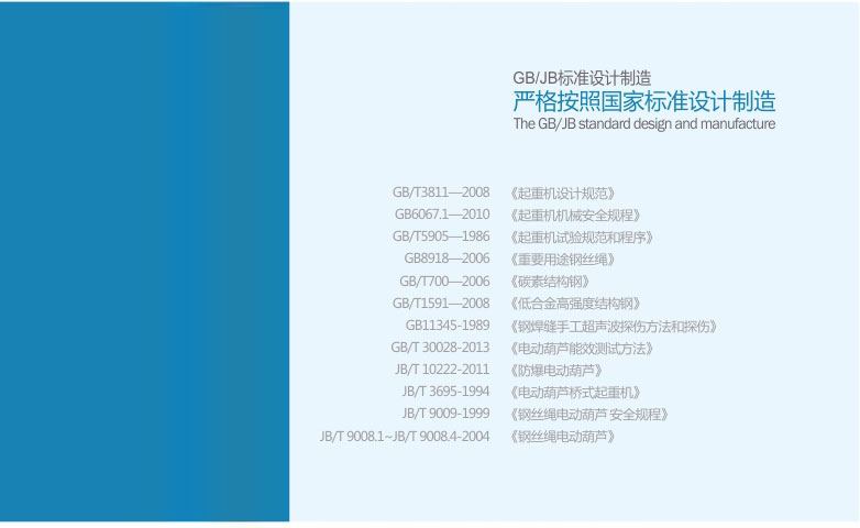 4、   冶金電動葫蘆的設計、制造滿足國家質檢總局所發的質檢辦特函【2007】375號文件。