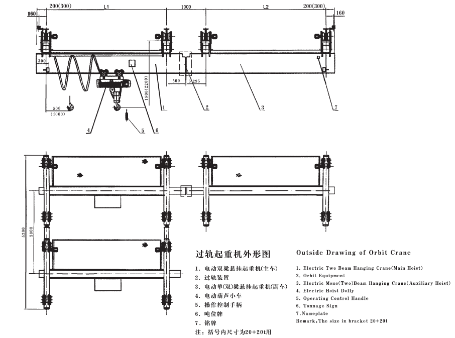 3、 該產品屬于組合設備,由電動葫蘆小車、電動雙梁懸掛起重機(主車)、(手)電動單(雙)梁懸掛起重機(副車)和過軌裝置組成。